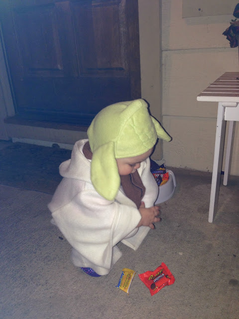 Haloween evening we waited til dusk and then ventured out to a few houses in our neighborhood. Lily loved it. I honestly think she sort of understood what was going on (ok probably not) but she walked right up to people's doors and smiled holding her bucket out.